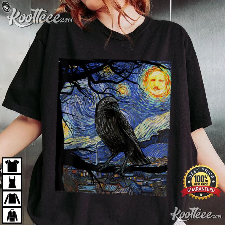 Raven Art Starry Night With Edgar Allan Poe T-shirt