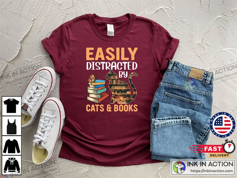 Easily Distracted By Cats And Books Shirt